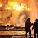 “Enquanto combatia o incêndio, os ocupantes atacaram novamente, danificando o caminhão de bombeiros”, disse o ministério no Telegram.