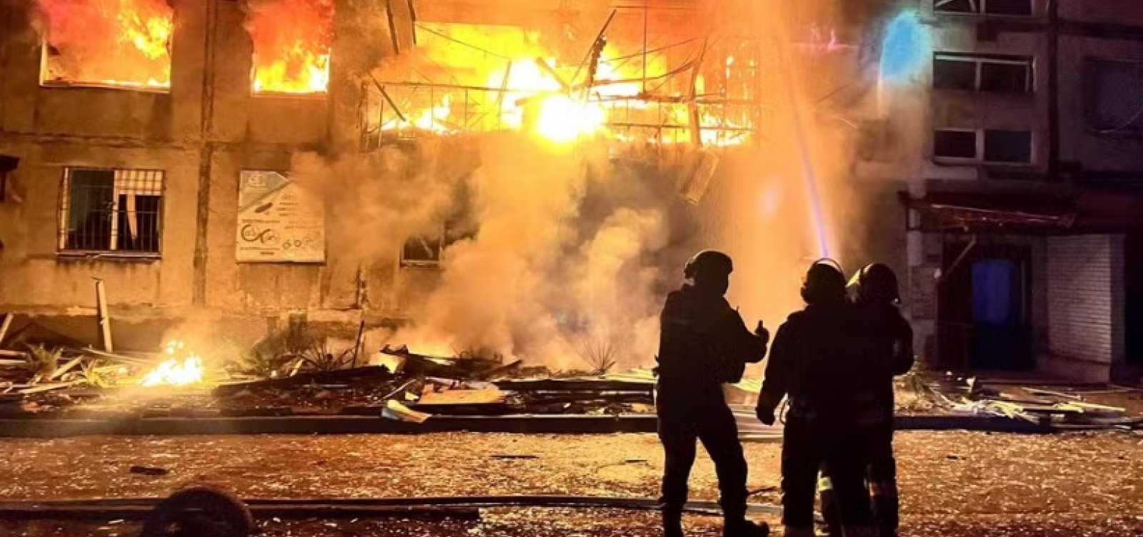 Ainda segundo o ministério, outras três pessoas foram mortas e sete ficaram feridas em um ataque com drone na região de Kharkiv, no nordeste da Ucrânia. Fotos de prédios parcialmente destruídos e em chamas, com os bombeiros retirando destroços dos edifícios, foram divulgadas pelo governo ucraniano.