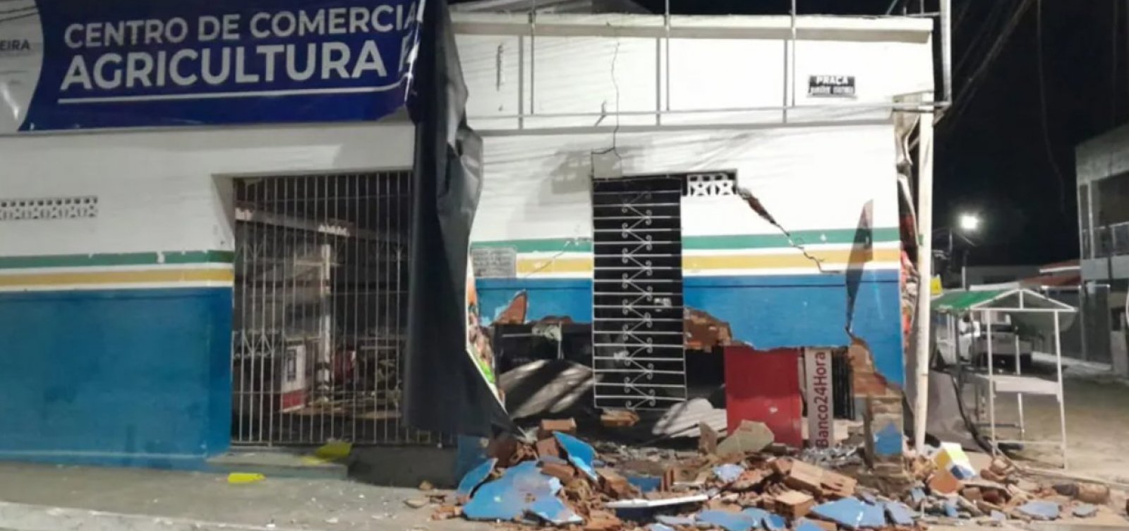 Quatro homens armados invadiram o Centro de Comercialização e Agricultura familiar da cidade de Muniz Ferreira, na Bahia, e explodiram um caixa eletrônico de autoatendimento 24 horas. A ação, que aconteceu na madrugada deste domingo (29), deixou o local destruído.