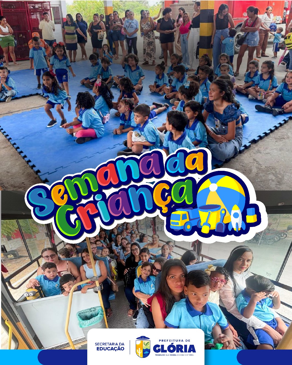 A Semana da Criança teve início nesta segunda-feira, 6 de outubro, com uma programação especial preparada pela Prefeitura Municipal de Glória, por meio da Secretaria Municipal de Educação. As atividades foram pensadas para proporcionar momentos de aprendizado, diversão e aproximação entre alunos, professores e famílias das escolas da Rede Municipal de Ensino.