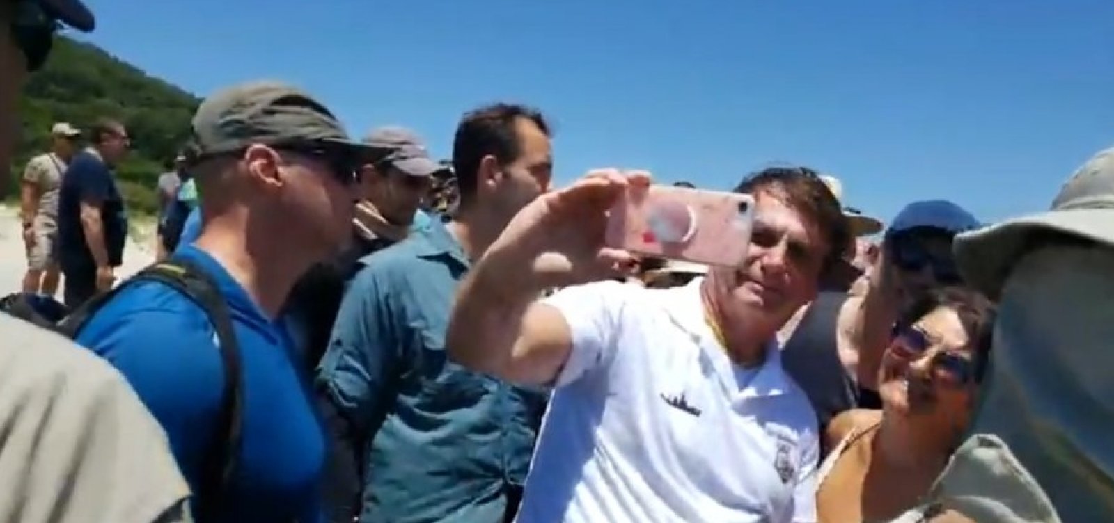 O presidente foi, hoje (16), cumprimentar apoiadores que o aguardavam numa praia da cidade, atrás de grades montadas pela equipe de segurança do Planalto. Na segunda (15), Bolsonaro intensificou uma aglomeração existente em uma praia da cidade.