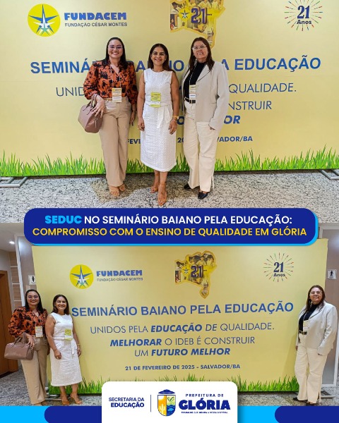 A Secretaria de Educação do município de Glória esteve presente no Seminário Baiano pela Educação – Unidos pela Educação de Qualidade, promovido pela FUNDACEM – Fundação Cesar Montes, no dia 21, em Salvador-BA. O evento reuniu gestores, educadores e especialistas para debater estratégias voltadas ao fortalecimento do ensino e à melhoria do Índice de Desenvolvimento da Educação Básica (IDEB).