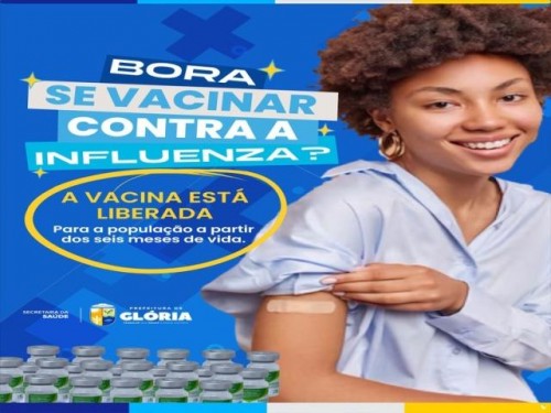 A Prefeitura de Glória, por meio da Secretaria Municipal de Saúde, informa que a vacinação contra a Influenza já está disponível para toda a população a partir dos 6 meses de idade. A ampliação segue orientação do Ministério da Saúde e tem como objetivo aumentar a cobertura vacinal e prevenir casos graves da doença.